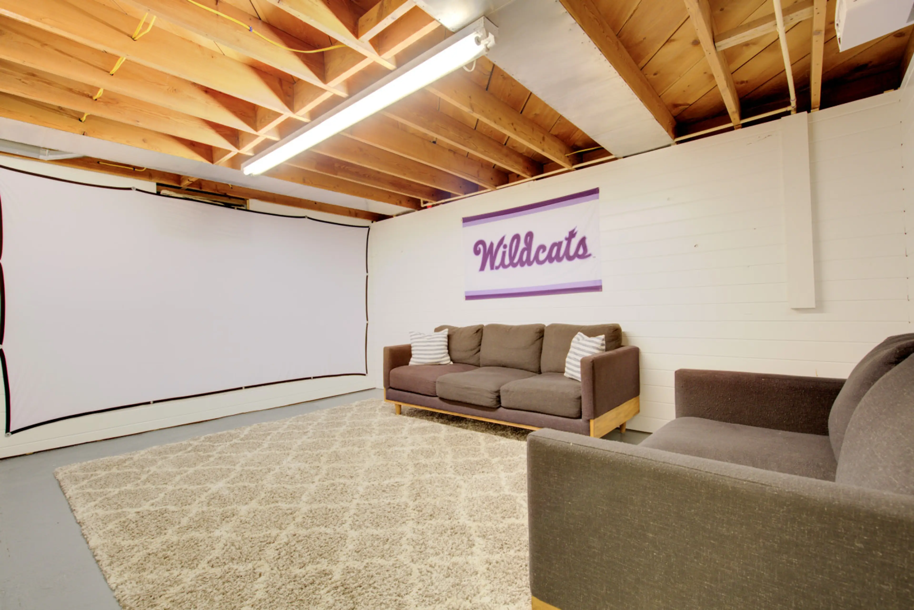 Bring the whole family and relax in this 4-bedroom home with theater room, roomy backyard and fast Wi-Fi. 4 private bedrooms & 2 baths Theater room Fully stocked kitchen 5 min to K-State sports venues, dining and downtown. Driveway parking and keyless entry make arrival easy.